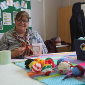 Eventually I said ‘yes’ and began to help on Friday mornings making tea and coffee, toast with beans, tomatoes, and cheese for people. But really, I just help with what needs doing. I help handing out food parcels to people in need, folding towels, making guacamole and salsa for the crowds, and now I am a feature on the knitting and crossword table. I am happy lending a hand wherever it is needed.