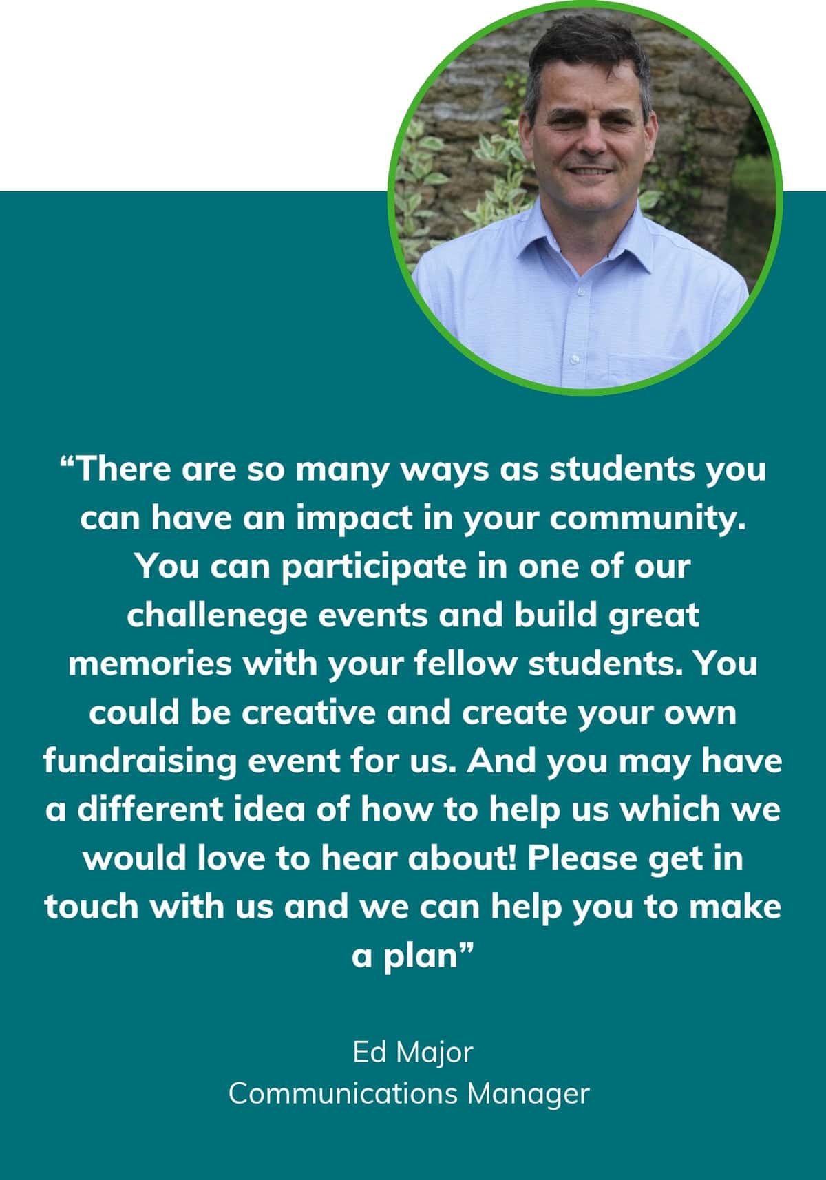 There are lots of ways that students can get involved in raising funds for our vital services and awareness of our mission. Contact us to find out more.